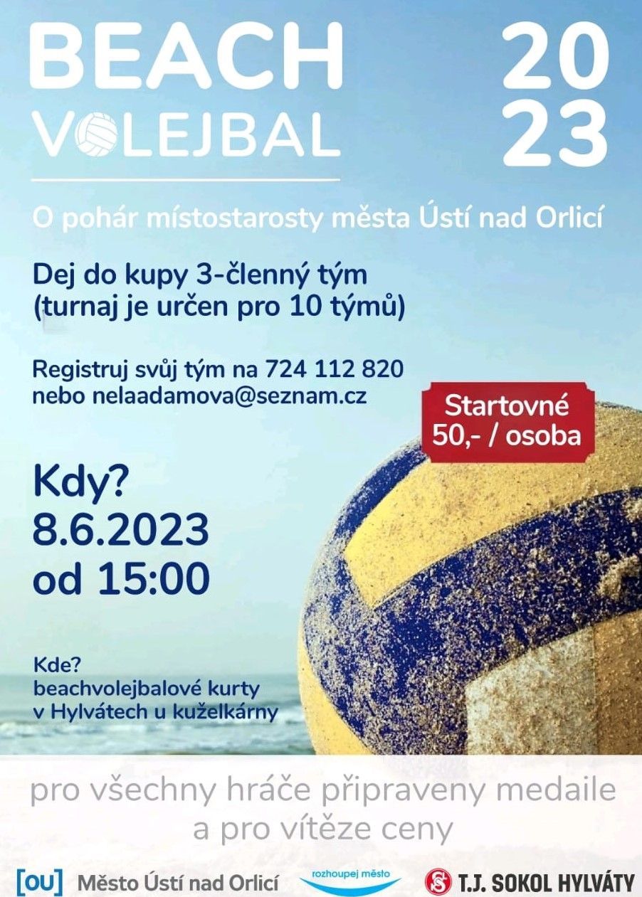 Dne 8. června 2023 od 15 hodin se koná Beach volejbal o pohár místostarosty města Ústí nad Orlicí Matouše Pořického. Turnaj se koná na beachvolejbalových kurtech v Hylvátech u kuželkárny.