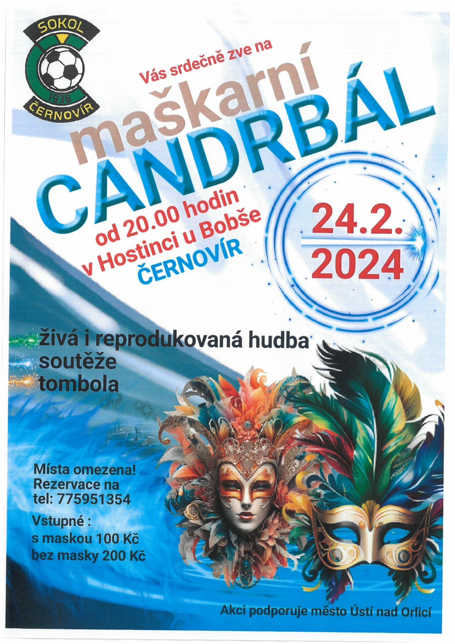 Sokol Černovír Vás srdečně zve na Maškarní candrbál v sobotu 24. února 2024 od 20 hodin v Hostinci u Bobše (Černovír). Připravena je živá i reprodukovaná hudba, soutěž, tombola. Místa jsou omezená, rezervace na tel.: 775951354.