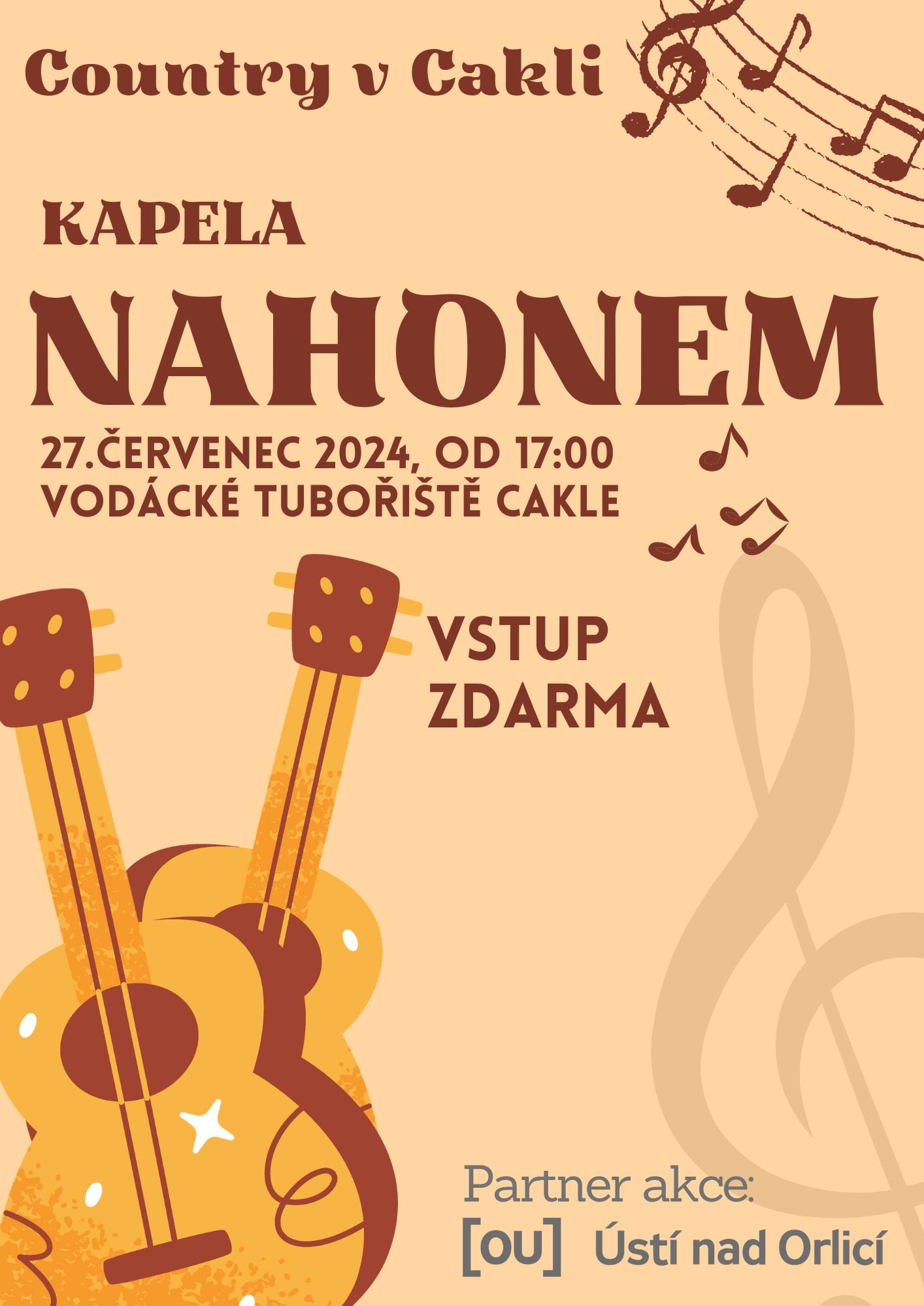 V sobotu 27. července 2024 v 17 hodin vystoupí country kapela Nahonem ve vodáckém tábořišti Cakle.