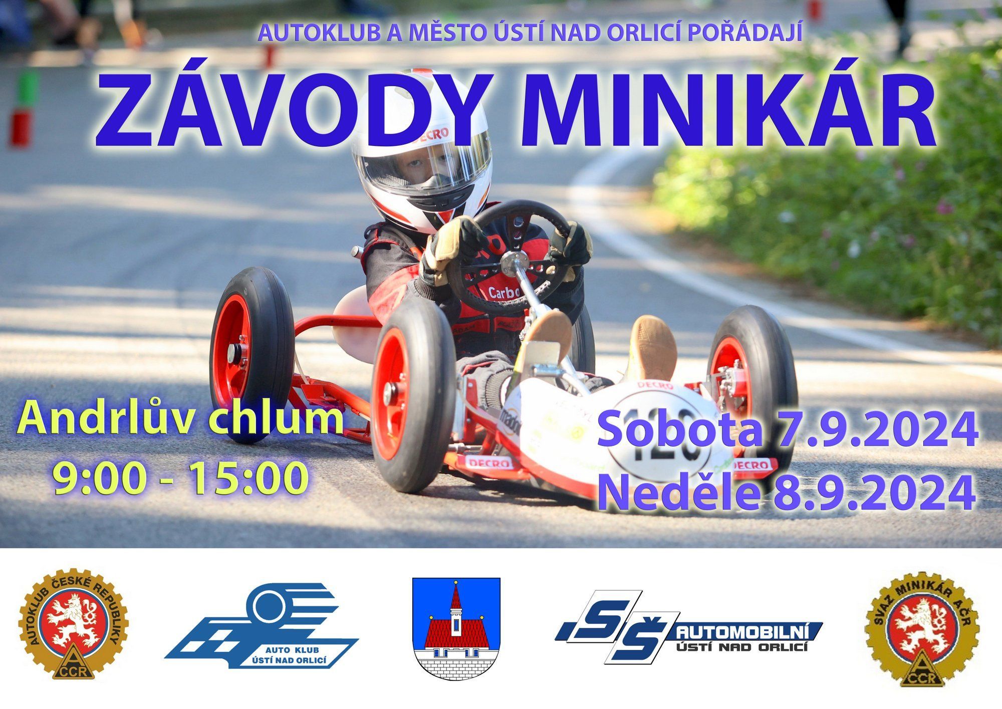 Nenechte si ujít tradiční závody minikár na Andrlově chlumu 7. – 8. září 2024, vždy od 9 do 15 hodin.