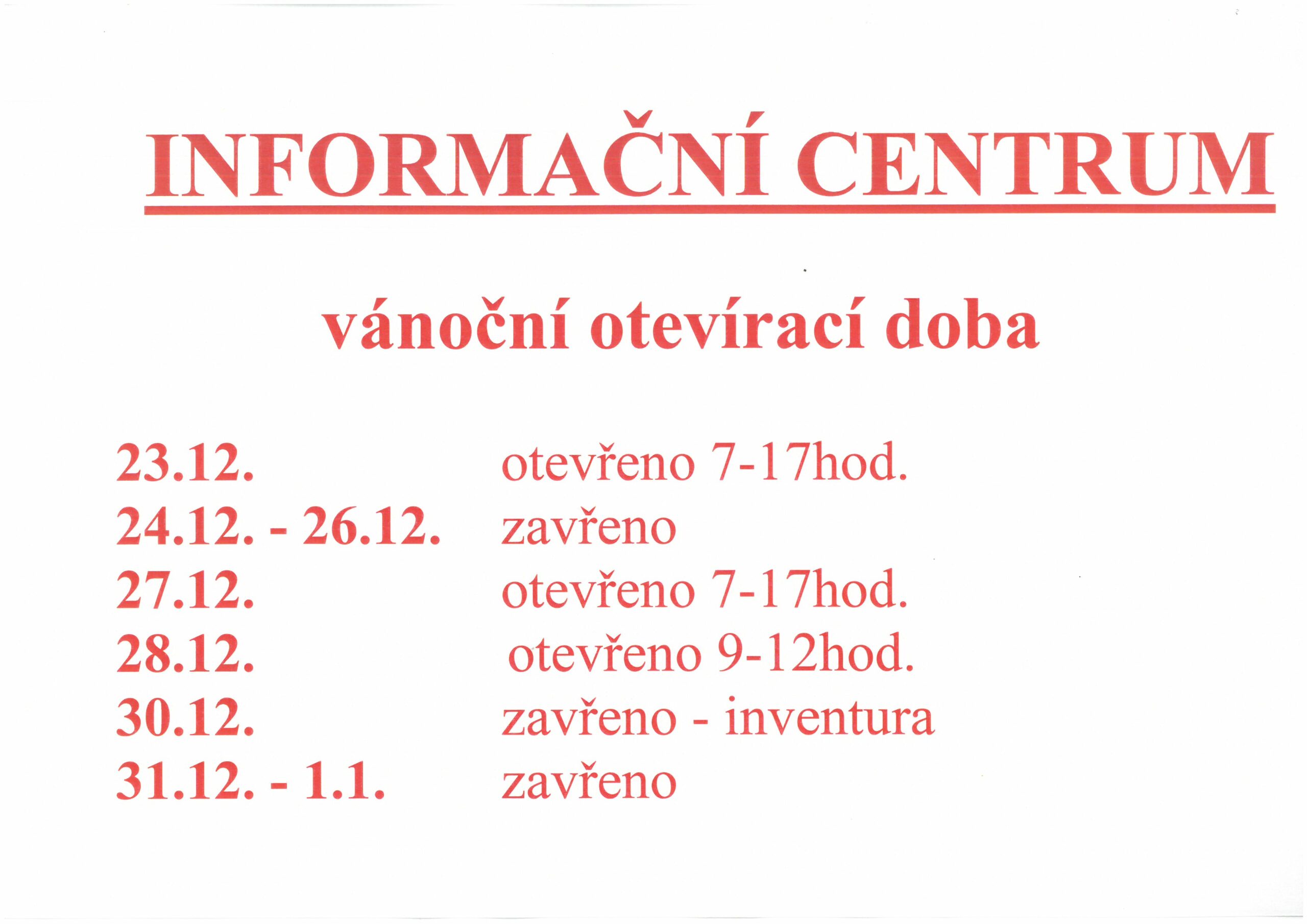 Vánoční otevírací doba Turistického informačního centra v Ústí nad Orlicí ZDE.