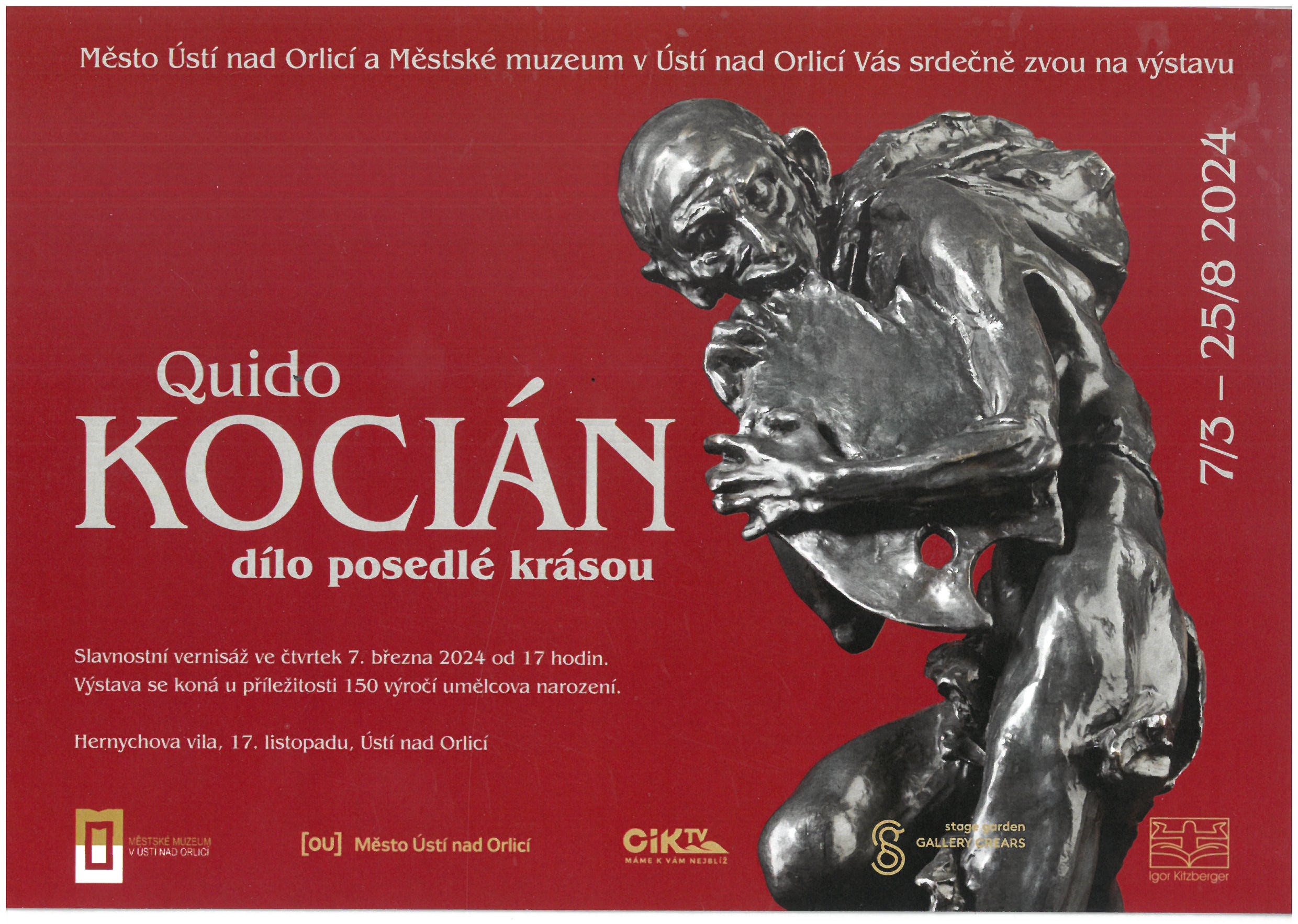 Až do 25. srpna 2024 jste zváni do Hernychovy vily v Ústí nad Orlicí na výstavu Quido Kocián – dílo posedlé krásou, kterou pořádá město Ústí nad Orlicí ve spolupráci s Městským muzeem v Ústí nad Orlicí a akademickým sochařem Igorem Kitzbergerem u příležitosti 150 výročí umělcova narození. Výstava návštěvníkům nabízí soubor nejkvalitnějších děl Mistra… Číst dále